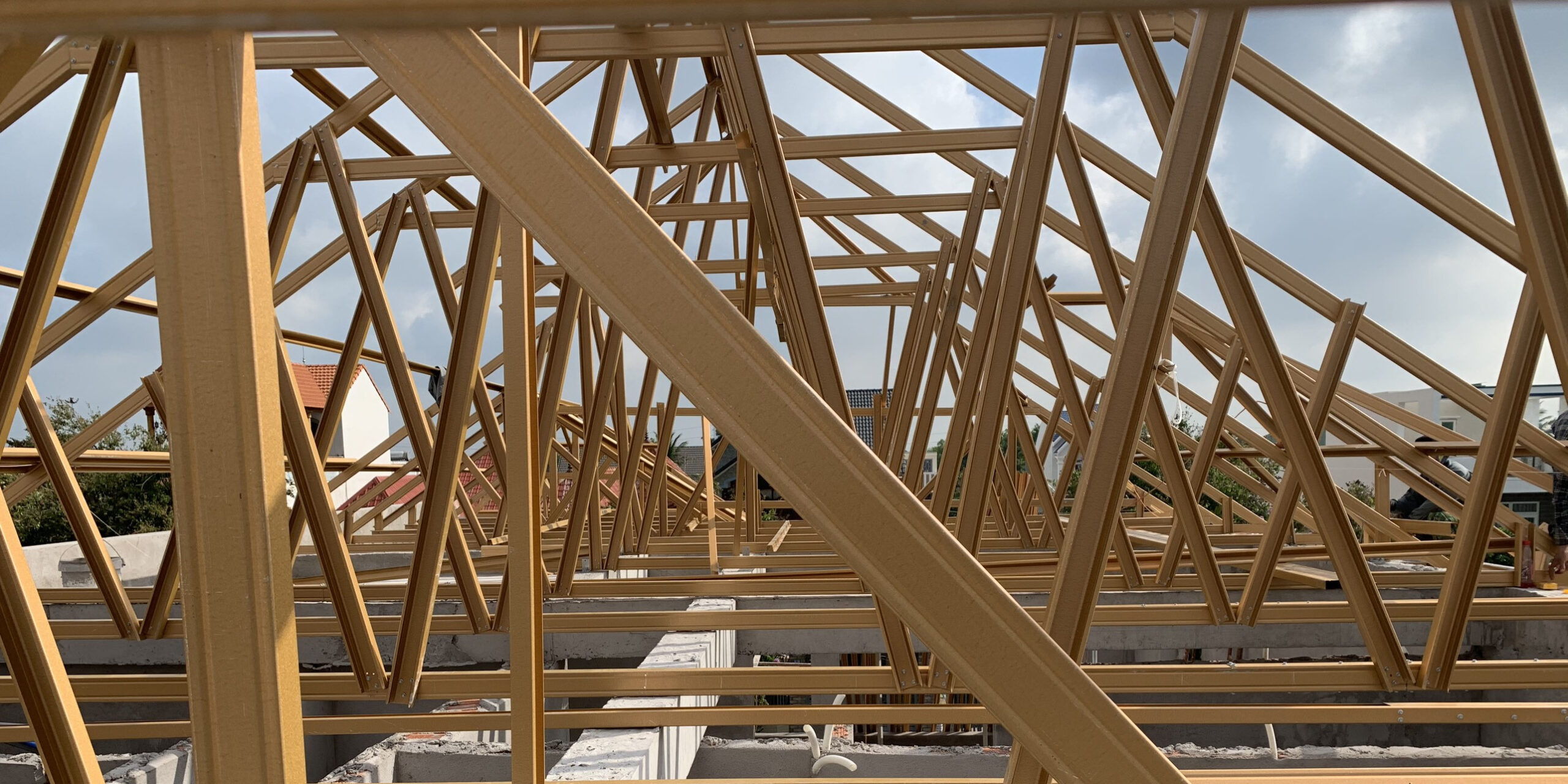 Taki là giải pháp dàn mái bằng thép mạ hợp kim nhôm kẽm cường độ cao trọng lượng nhẹ, tổ hợp từ các thanh dàn tiết diện C (C100 và C75) và đòn tay tiết diện Omega (TS32, TS40 và TS61) cán nguội định hình, cùng các phụ kiện đồng bộ chất lượng cao kèm theo như bát liên kết, vít liên kết, bu lông, diềm trang trí các loại.